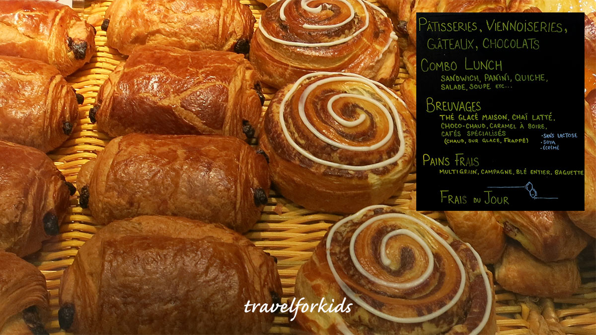 Lots of fun food for kids to try in Montreal – French pastries such as pain au chocolat, brioche, fruit tarts, muffins, Quebec specialties poutine and maple cornets, and bagels, Montreal style.