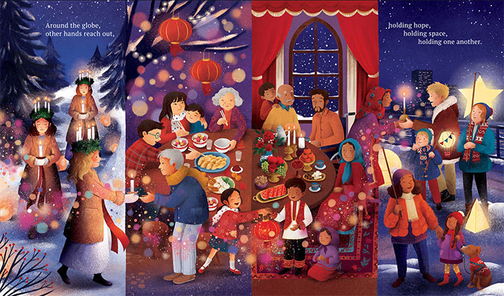 Beautifully illustrated Christmas celebrations in different countries – Colombia, India, Egypt, Mexico, Ethiopia, Philippines, Canada, Lebanon, Italy, Australia, Serbia, Iceland.