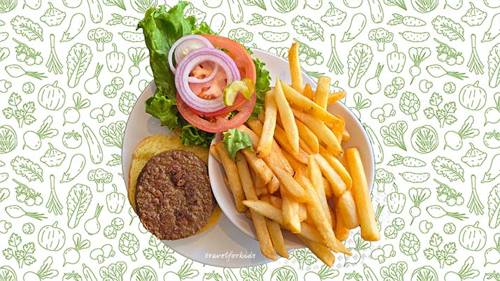 Greenhouse burger – Beyond Burger with lettuce, tomato, onion, pickle.