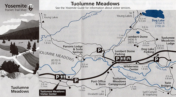 At visitor centers and park entrance kiosks, ask for free copies of Yosemite Pocket Trail Maps:
